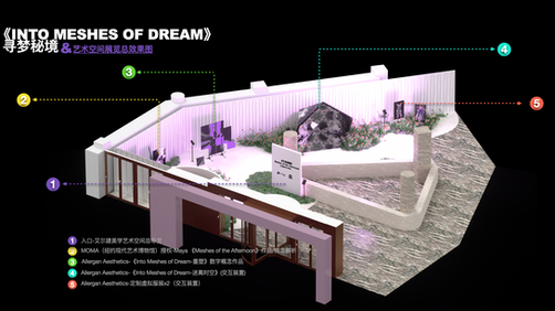 本次展览以“寻梦秘境”为题,借《午后的迷惘》中三个象征符号为索引——“花”、“钥匙”和 “镜子”,邀观者入梦。运用先进的数字科技和交互装置,创造出更具沉浸感和艺术性的体验,让 每一位观者得以探索出个体化的梦境觉知。